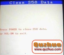 5、默認就在Clean S58 Data這一項,按電源鍵確認,出現"Press POWER to clean S58 Data or Vol-Dn to exit"