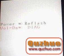 3、金卡插入手機,拔掉手機電池,再裝上,按住電源鍵不松開(注意是不松手),再按音量減鍵,進入HBoot界面,等待自動讀取文件,稍等會顯示,"Power=Reflash Vol-Dn=DIAG"