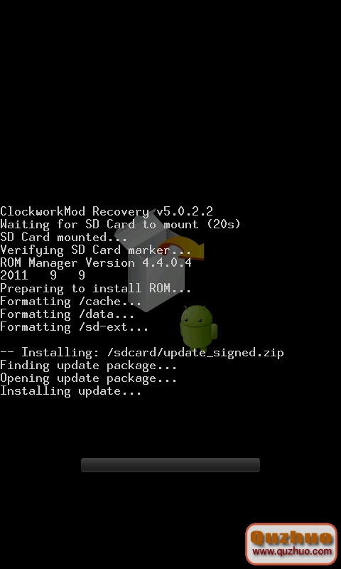 5、確認刷機後,系統自動重啟,進入Recovery,等待刷機