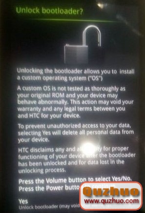 解鎖成功,手機音量鍵選取Yes,電源鍵確定完成解鎖