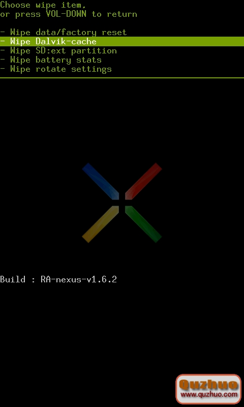 如遇到刷機失敗的情況,比如刷機後出現無法開機,無法進入系統的情況,請再次關機,然後重新通過之前的方法再進到recovery恢復模式中,選擇 Wipe,進入如下界面後,全部項目選擇一下,清空所有手機數據(如同恢復出廠設置),然後再重啟手機就可進入系統了。如果還是有問題,請先wipe後再重新按之前的步驟再刷一次。