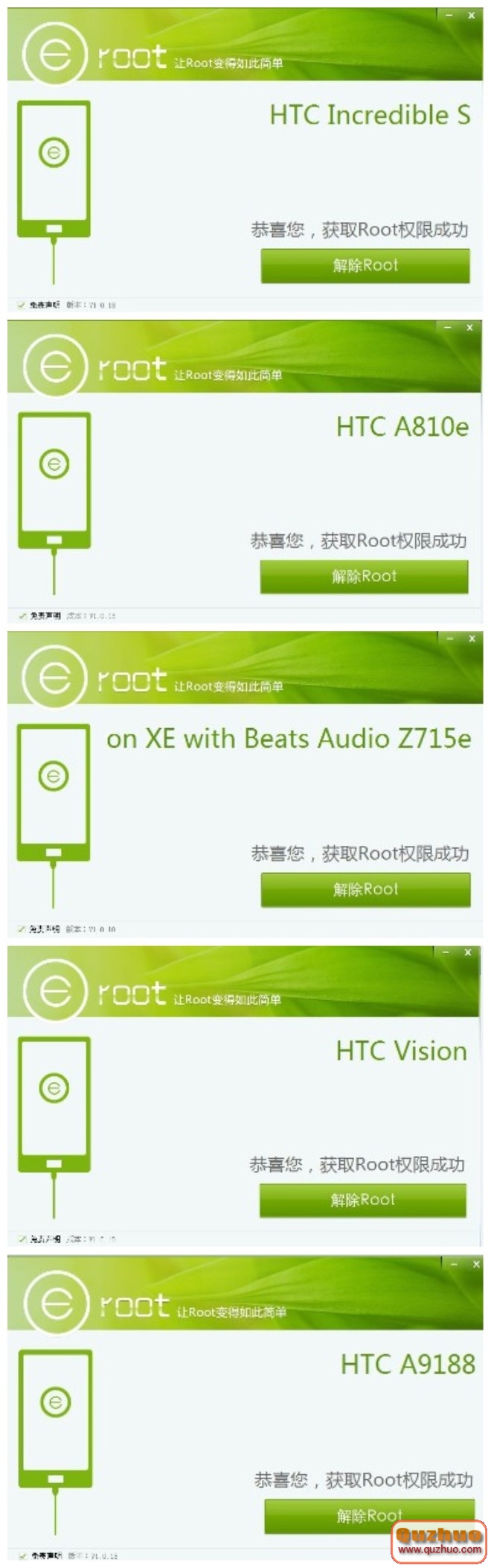 3.4月18日更新的版本同時支持HTC全機型root。
