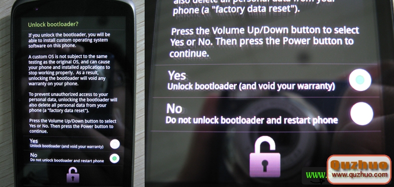 成功輸入完以上的命令後,你的手機屏幕就會出現Unlock bootloader?的黑色的對話框(如下圖)。