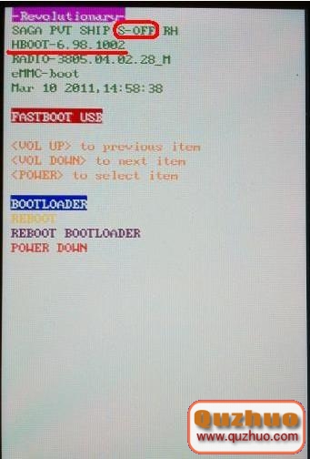 10、再次執行revolutionary.exe,輸入KEY回車,,手機會自動重啟進入HBOOT狀態,不久後你會發現s-on變成了s-off,CMD末尾會有(Y/N),選擇N退出。