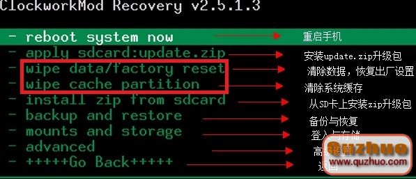 4、進入recovery後先雙清,在選擇ROM刷機即可。