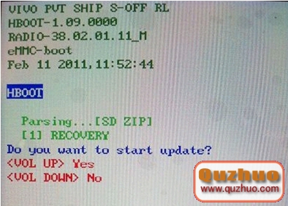 關機狀態按住音量下鍵和電源鍵進入hboot界面(此時會自動檢查SD卡裡的更新文件),不能進HBOOT界面的先按如下方法設置先開機狀態下,