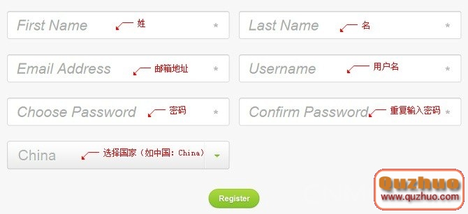 2).點擊右上角的「Register 」跳轉到注冊頁面,填寫如下信息