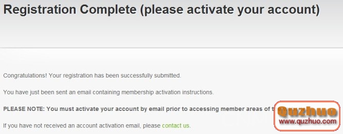 點擊「Register 」按鈕提交注冊信息後,會提示注冊已經成功,並且需要您前往注冊郵箱收取激活郵件激活注冊