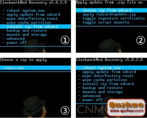 10. 進入子菜單,選擇“choose zip from sdcard”