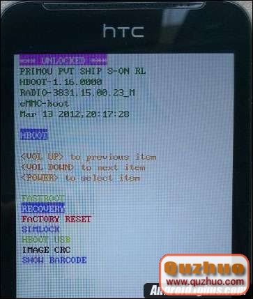 繼續沿用剛才的fastboot 界面按電源鍵進入hboot 界面的方法。