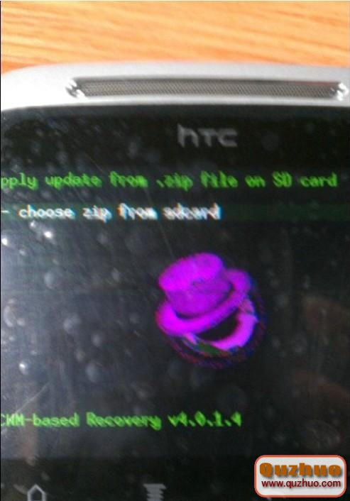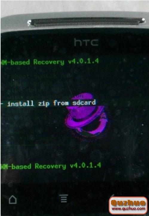 (3)等待10秒鐘,按音量下選擇Recovery,按電源鍵確認(如果進入recovery後出現紅色三角感歎號,說明你還沒刷入recovery,請先移步http://www.7xz.com/topic/10937 ),利用音量鍵向下選擇"install zip from SDCard".