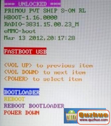 2.關閉手機 → 按住音量“-”鍵不放,再按電源鍵進入HBOOT