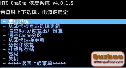 9、清空完成後會自動回到Recovery的首頁,如下圖: