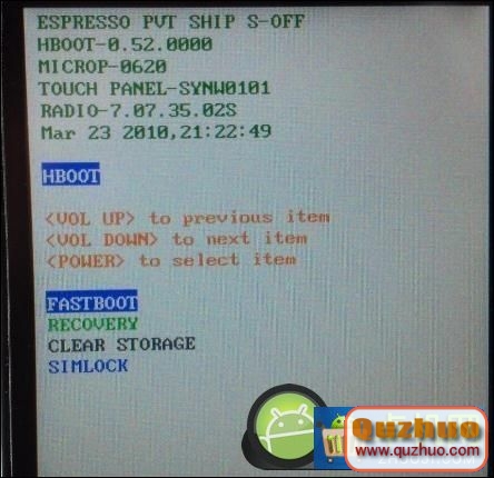 1.關機-按住音量下鍵-開機,進入hboot模式後,按音量鍵選擇recovery,按開機鍵確認。
