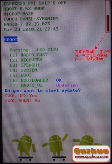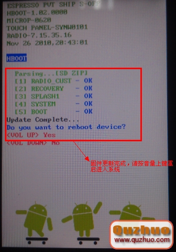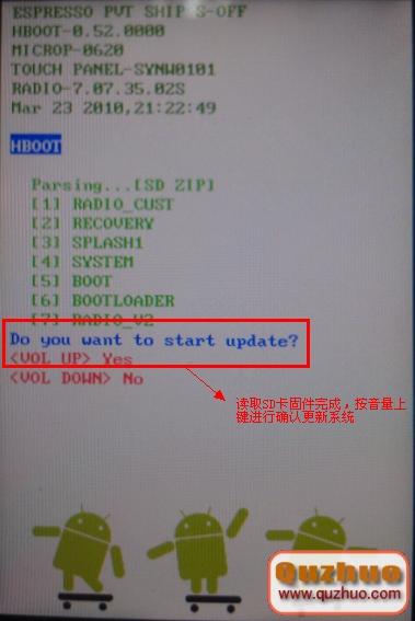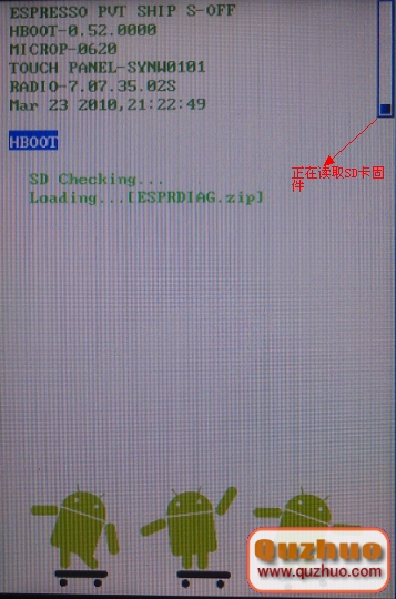 開機後,刪除存儲卡上ESPRDIAG.zip文件,否者每次進入hboot模式,都會提示,是否升級系統