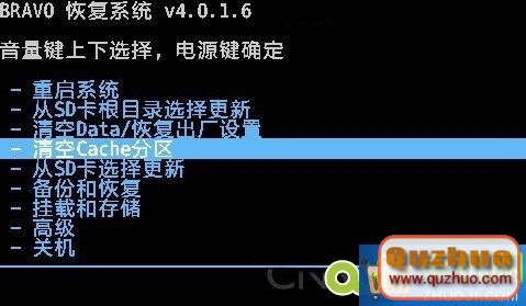 依次執行“wipe data/factory reset ” - “wipe cache partition”這兩個步驟(術語稱為“雙清”)