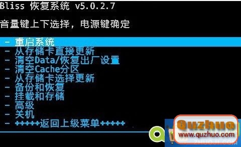 (在此界面下,音量上下是控制光標上下移動,電源鍵為確認/選擇鍵)