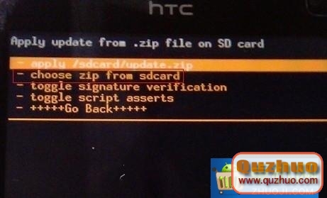 選擇Install zip from SDCARD(中文版:從SD卡選擇升級包),然後再選擇choose zip from sdcard(中文版:從SD卡選擇升級包)