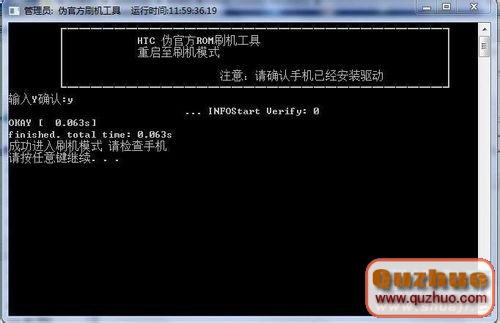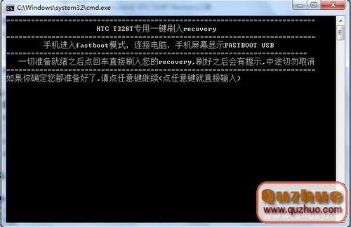 按任意鍵刷入Recovery。正在刷入Recovery中,請不要斷開USB數據線!