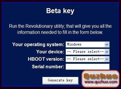 4.填好以後點Generate key,會給你一個16位的Beta key。記下來這個16位數字,建議選擇數字後復制備用。