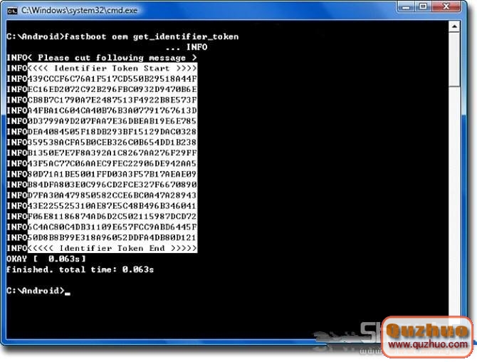 繼續輸入:fastboot flash unlocktoken Unlock_code.bin 按回車鍵