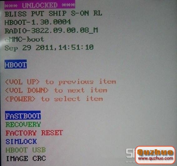 2. 按住音量鍵下 + 電源鍵 進入hboot界面