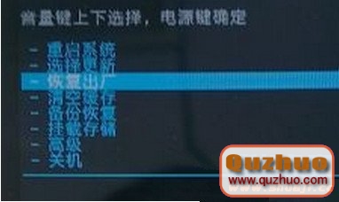 音量鍵選擇“恢復出廠”,點擊電源鍵 確認