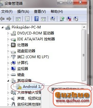 2:用數據線連接好www.shuleba.com電腦,安裝HBOOT驅動程序,鼠標右鍵點擊我的www.shuleba.com電腦(計算機),選擇設備管理器。此時www.shuleba.com電腦發現一個新設備(Android 1.0 如圖)