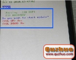 2:然後手機關機,然後按音量下鍵+開機鍵開機,出現Hboot界面時,然後等系統自動更新PG88IMG.zip文件(在提示是否更新的時候按音量上鍵)。如果關機後開機無法進入屏幕可以拔掉電池,重新放電池再重復以上開機動作。