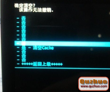 4:音量鍵選擇“清空緩存” ,點擊電源鍵 確認,接著再按音量鍵選擇“是--清空Cache” , 點擊電源鍵 確認