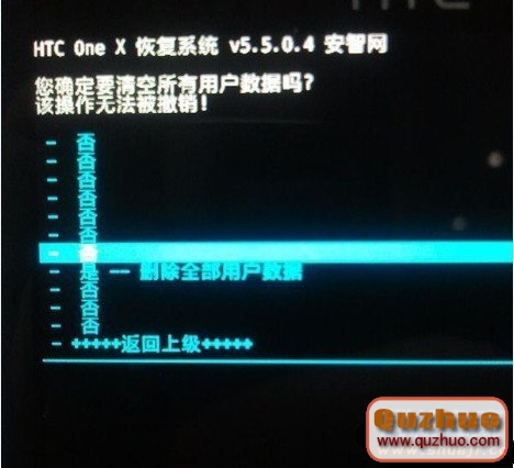 3:音量鍵選擇“恢復出廠”,點擊電源鍵 確認,接著再按音量鍵選擇“是--刪除全部用戶數據” ,點擊電源鍵 確認