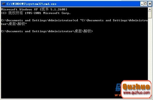 7.接下來在CMD窗口輸入cd 注意是cd+(空格),cd後面有個空格,然後把桌面上的解鎖文件夾拖放到cmd對話框,回車