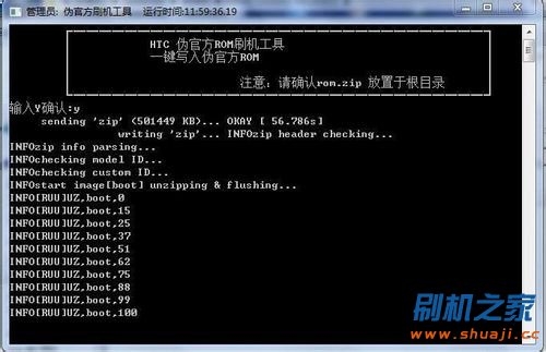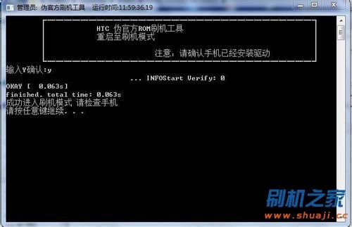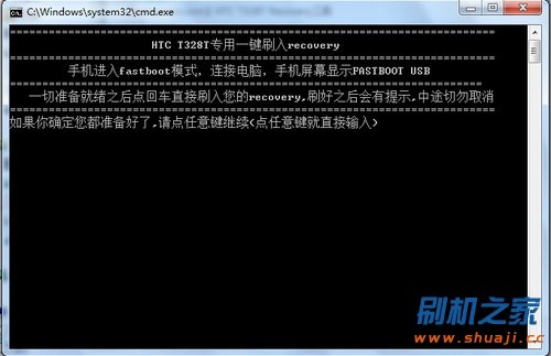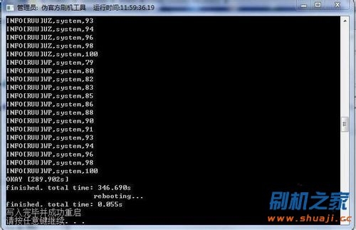 按任意鍵刷入Recovery。正在刷入Recovery中,請不要斷開USB數據線!