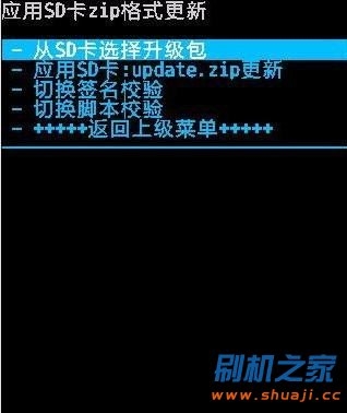 6:使用音量鍵選擇 -從SD卡選擇更新 按開機鍵確認