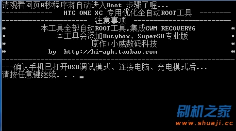 4:然後按任意鍵可以root操作了,系統會自動root,然後根據屏幕上的提示操作,如果成功了會提示你root成功了。