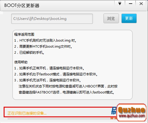 來說一下htc a320e手機怎麼刷boot.img文件吧,這個本來說應該不是很難的一個操作,可是看到網上很多人說的不是很明白,讓一些新手操作起來感覺特別的麻煩,所以在這裡我就來說一個比較好用的方法吧,網上很多說的都是通過命令的方式來操作,這次采用的是一個軟件的方法來刷入的,下面來看看具體的操作步驟吧: