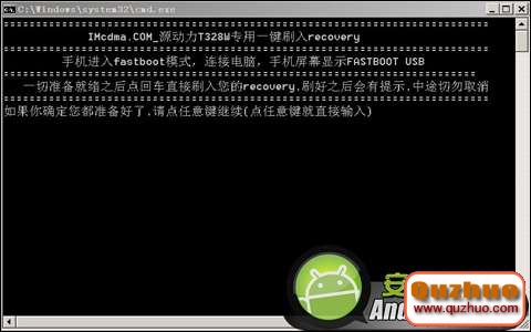 第四步:窗口顯示“你已進入Fastboot刷機模式,准備開始刷Recovery”,這時任意鍵開始。
