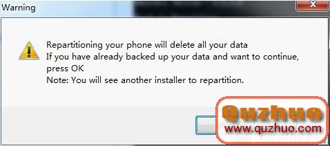 選擇155 MB,點“Repartiton”後會彈出一個警示的窗口