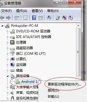鼠標右鍵點擊我的www.shuleba.com電腦(計算機),選擇設備管理器。此時www.shuleba.com電腦發現一個新設備(Android 1.0,如圖)