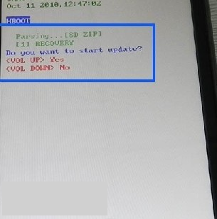 3、解壓後會提示是否需要刷機,按音量減為不升級,按音量鍵加為開始升級刷機.