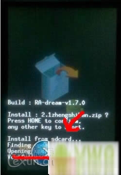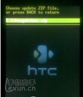 2:將軌跡球滑動到flash zip from sdcard,這個英文的意思是從內存卡中讀取zip刷機文件,然後按小房子鍵進入如圖。