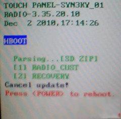 3、刷完recovery屏幕最後一行會出現英文press <power> to reboot,這時按電源鍵手機重啟。(刷完後刪除卡裡的pc49img.zip文件,否則下次進工程模式還會提示你刷recovery,到此刷recovery結束。