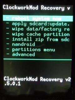 5、刷完,直接按電源鍵返回到recovery界面。這時選reboot system now按軌跡球手機重啟。注意刷完radio會重啟兩次,千萬不要拔電池,也不要亂動,等待手機自己進入系統。到此刷radio結束。