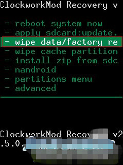 2、選擇wipe data/factory reset,清除手機中之前的數據。