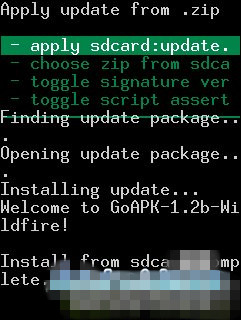 此時,如果你看到的是一個帶有一個三角感歎號的手機界面(按音量上+電源鍵可以進入官方Recovery)而不是一個標有ClockworkMod Recovery的界面(見下圖),那麼很遺憾,你的機器尚未刷好可用的Recovery,目前的仍然是官方Recovery。那麼我的教程你就有看下去的必要了。