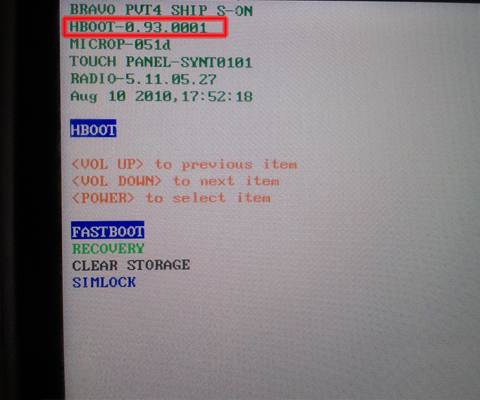 請先關閉手機,拔掉USB線。同時按住音量下鍵和電源鍵開機,此時進入了FASTBOOT界面。(此時需注意記錄紅色圈選部分的數值)