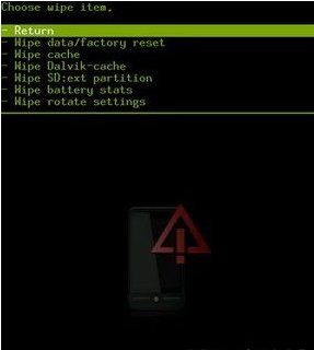 刷機前,先進入WIPE項:進入後如下圖:(刷RADIO的不用進,跳過這步)