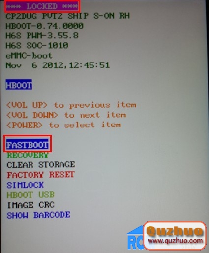 注意,本教程開始前,請先關機,按音量減少鍵+電源鍵進入HBOOT模式