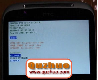 刷機教程HTC G16-ChaCha 第一步刷機步驟: 1、確保你的機子是S-OFF! 查看方法: 完全關機的狀態下,按住音量下鍵再按開機鍵,進入