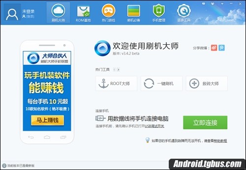 1、下載刷機大師解壓後安裝,開啟USB調試模式後,連接到刷機大師會自動安裝手機端驅動,使機器保持正常的開機狀態。